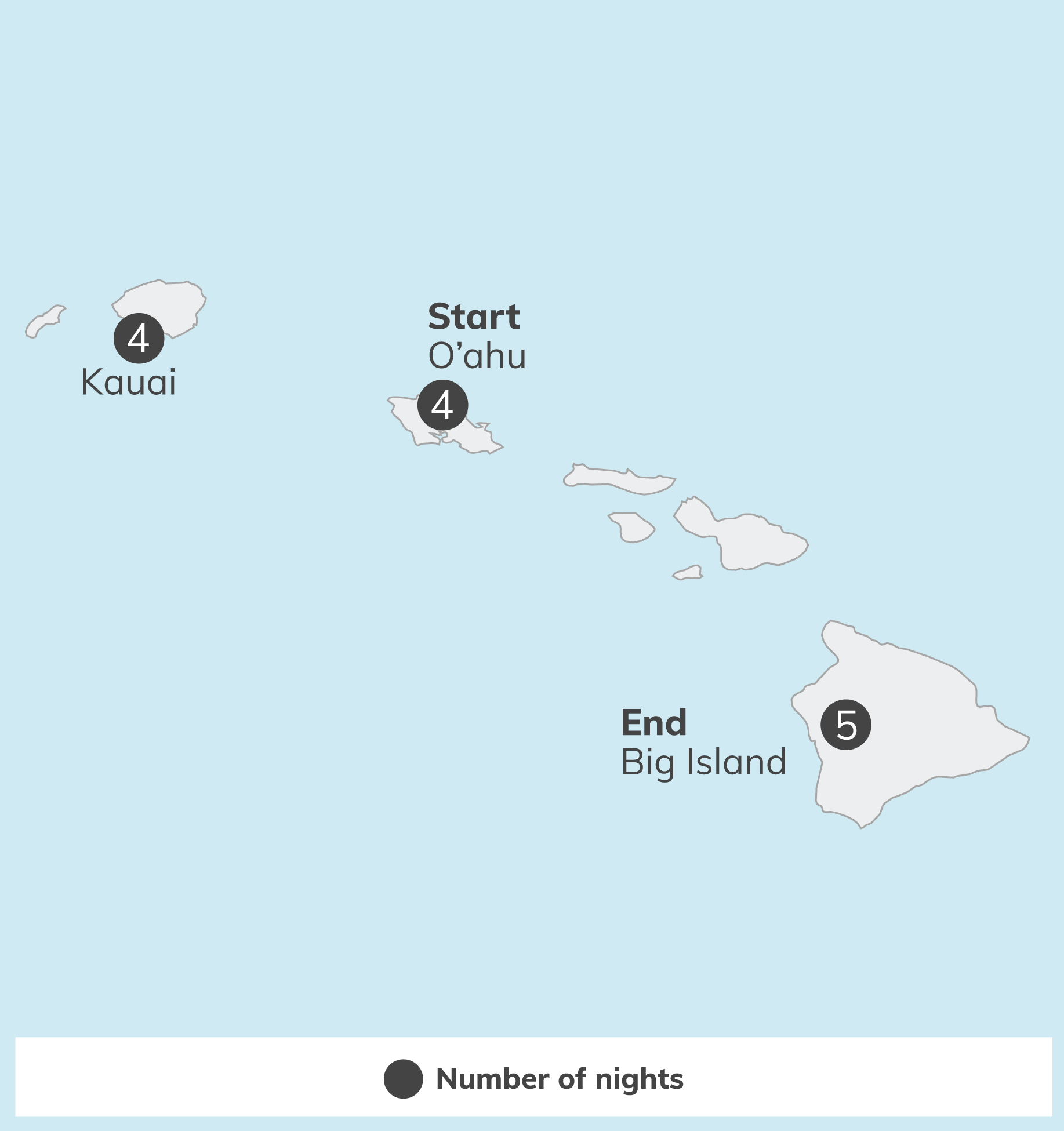Private motor coach with a professional driver, plus internal flights between the Hawaiian Islands.